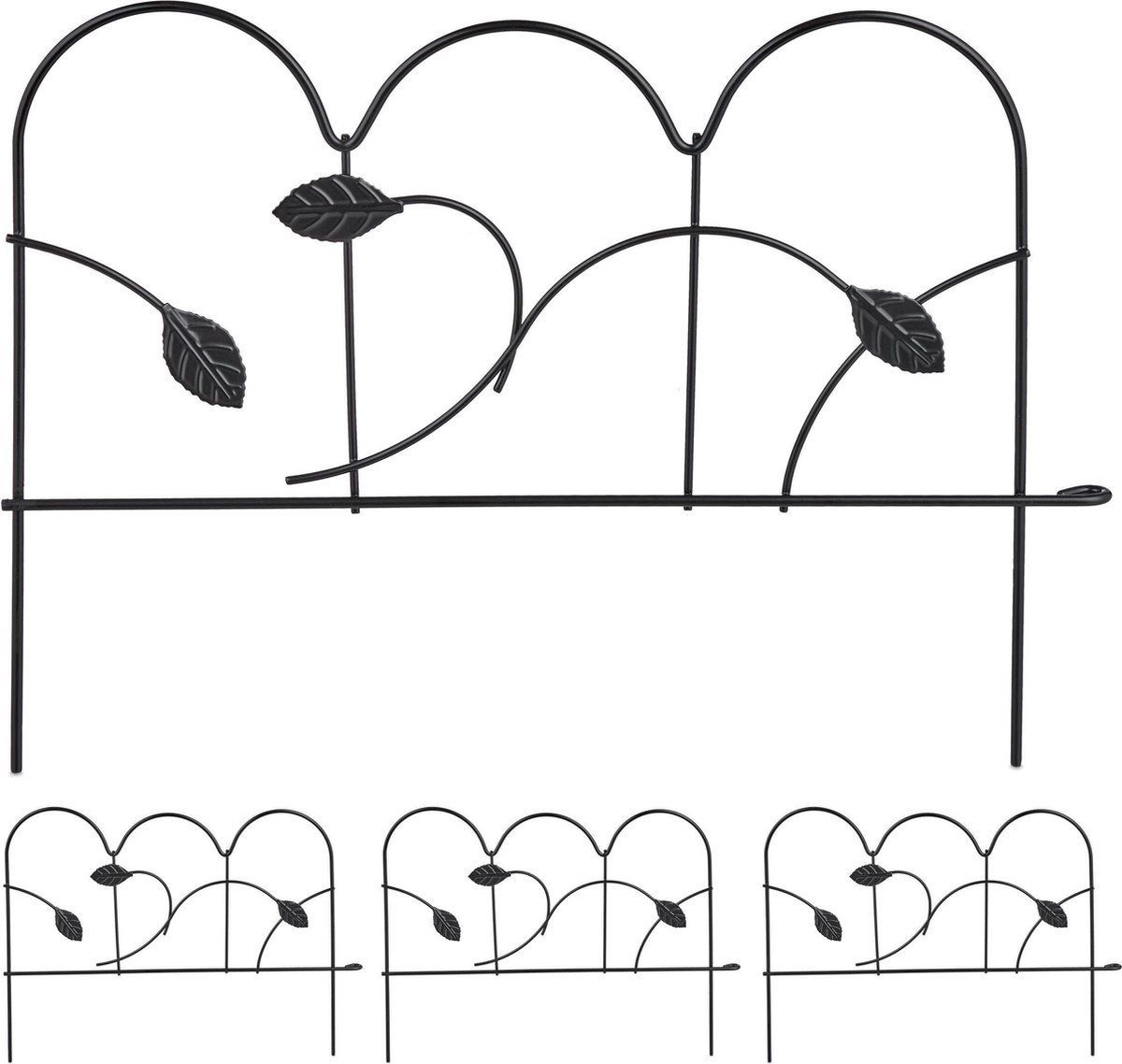 Relaxdays Perkhekje 4-delig - metaal - sierhekwerk - 28,5 x 39 cm - tuinhekje - zwart