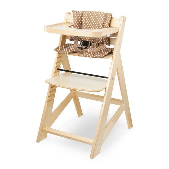 Inhoud van het pakket: Natuurlijke houten kinderstoel met 3-punts veiligheidsgordel, afneembaar maaltijddienblad, 2 comfortabele kussens, verstelbare voetensteun - alles wat je nodig hebt om de baby te begeleiden Maximaal aanpassingsvermogen: 12 verstelst
