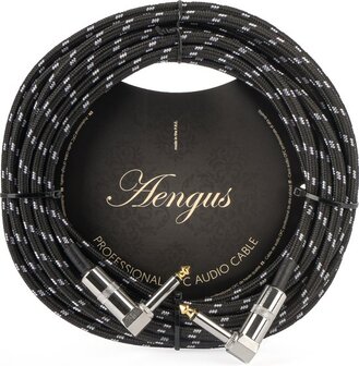 Áengus Black Tweed Gitaarkabel - 6 meter - 6.35mm mono jack plug haaks/haaks - zwart