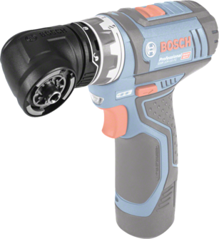 Redefine your limits – de flexibiliteit van vijf oplossingen in één compact gereedschap Hoge flexibiliteit: de GFA 12-W verandert de accuschroevendraaier in een haakse boormachine Compatibel met GSR 12V-15 FC (0 601 9F6 ...) “One-Click”-interface zorgt in een oogwenk voor een stevige bevestiging op de machine. Alle andere FlexiClick-opzetstukken kunnen bovendien bevestigd worden aan de GFA 12-W (bijv. de wisselboorhouder GFA 12-B) Compact ontwerp: de compacte bouwvorm (koplengte: 61 mm) maakt het werken op zeer krappe plekken mogelijk Eenvoudige bedienbaarheid: de GFA 12-W kan in 16 verschillende posities (360°) vastgezet worden zonder het opzetstuk van de accuschroevendraaier te hoeven afnemen