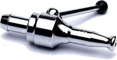 Messing verchroomde straalpijp voorzien van KIWA keurmerk, voor gebruik op o.a. brandslanghaspels. Sproeipatroon: uit, stralen, sproeien. Uitgevoerd met slangtule.