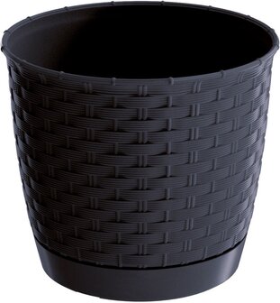 Prosperplast Ronde gevlochten plantenpot - antraciet grijs - Ø 19 cm