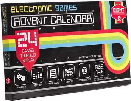 Deze unieke adventskalender neemt je mee terug naar de gloriedagen van de videogames. Dankzij de duidelijke en kleurrijke handleiding bouw je iedere dag een nieuw circuit en ontdek je spelenderwijs de wereld van elektronica. Geen soldeerbout nodig, alleen jouw nieuwsgierigheid, plezier en 3 AA-batterijen.