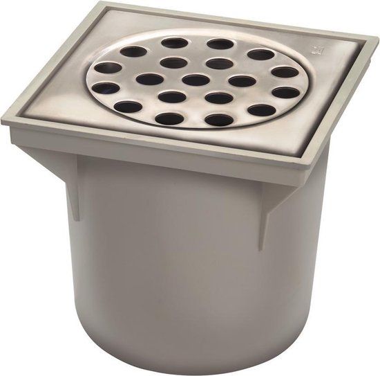 Van den Berg Onderuitlaat met emmer vloerput met 1 aansluiting, uitwendige buisdiameter 75mm, vloerput kunststof, kwaliteitsklasse vloerput ABS, met rooster, rooster roestvaststaal (RVS), kwaliteitsklasse rooster RVS 304 (1.4301), vorm rooster vierkant, u