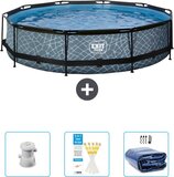EXIT Rond Stone Frame Zwembad - 360 x 76 cm - Grijs - Inclusief Pomp, Testrips & Solarzeil