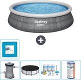 Bestway Fast Set Opblaasbaar Zwembad - Rond - Rotanprint - 396x84cm - Compleet met Accessoires