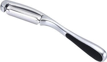 Het scherpe, roestvrijstalen blad schilt zelfs de hardste fruit en groenten met gemak