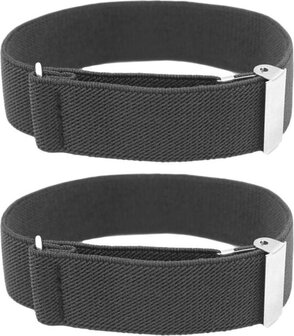 Een paar donkergrijze elastische mouwophouders. Ideaal wanneer uw mouwen iets te lang zijn en u niet met opgerolde mouwen wilt rondlopen. U doet deze bandjes om uw arm en kleding en zet ze vast op de gewenste maat. Hierna trekt u de kleding iets omhoog, waardoor de mouw korter wordt. De mouwophouders zijn 25mm breed en in lengte te verstellen van ongeveer 15-30cm. Ze passen dus bijna altijd. Voor deze prijs ontvangt u twee mouwophouders.