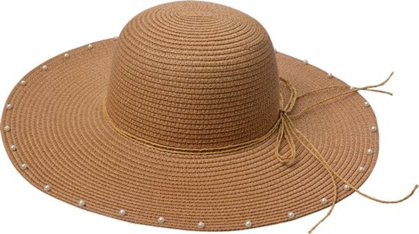 Clayre & Eef Hoed Dames Bruin Papierstro Zonnehoed - One Size - Hoeden