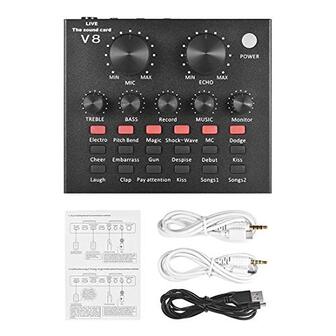 XIEJ Live Sound Card, Mini Sound Mixer Board voor Live Streaming, Voice Changer Geluidskaart met Meerdere Geluidseffecten, Audio Mixer voor Telefoon/Computer - Audiokaarten