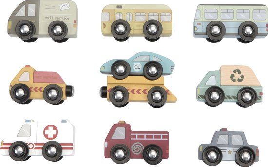 Deze houten bedrijfs en – hulpverleningsvoertuigen zijn ontworpen om samen te gebruiken met de houten treinset van Little Dutch. De voertuigen zijn geschikt om op de rails te rijden en zo hulp te bieden waar ze nodig zijn in de stad. Gebruik de voertuigen met de treinset XXL en de uitbreidingssets voor uren speelplezier. Gemaakt van duurzaam en FSC-gecertificeerd hout. Bij deze set zijn geen rails stukken inbegrepen.