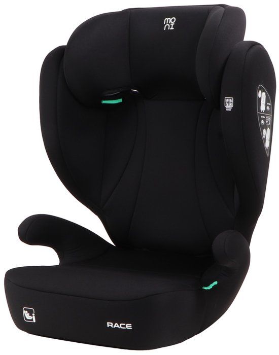 De Moni Race plaats je eenvoudig voorwaarts in de auto. Je bevestigt hem met de 3-punts autogordel van je voertuig, waarmee je ook je kindje veilig vastzet. De in hoogte verstelbare hoofdsteun zorgt ervoor dat de stoel zich aanpast aan de lengte van je kind. Voor extra comfort is het zitvlak zacht gevoerd en zijn de armleuningen ergonomisch gevormd.