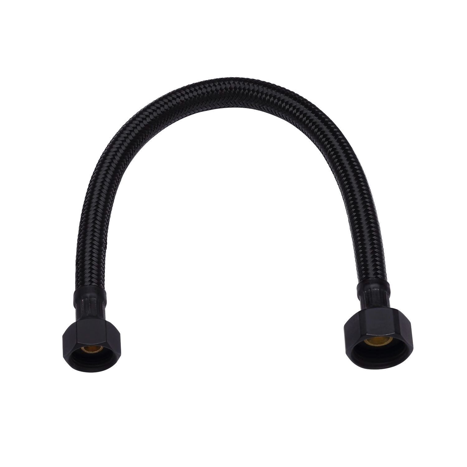 Bevat uw badkamer of toilet een mat zwarte kraan, sifon en/of wastafel? Dan is dit de perfect oplossing voor een mooie afwerking van het geheel in uw badkamer of toilet. Als u een zichtbare slang gaat plaatsen dan kunt u nu ook voor een mat zwarte variante kiezen! De slang is flexibel en is vervaardigd uit kunststof (nylon). De aansluitslang is 30 cm lang en heeft twee draad aansluitingen van 1/2" en 3/8" inch.