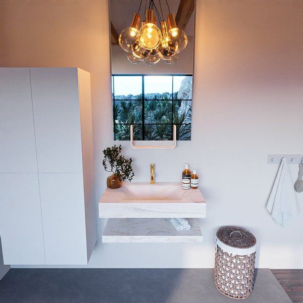 Bekijk productMONDIAZ ALAN-DLUX Badmeubelset 80cm Ostra met vrijhangende wastafel 1 kraangat Ostra ADX80OstPLM1Ost - Badkamerkasten