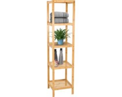 Brixy Badkamerrek - 5-Laags Badkamer Kast - Bamboe - 141x33x33cm - Naturel - Badkamerkasten