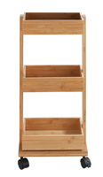 WENKO Bamboo Rolling Shelf - 3 Tier - Natural Wood