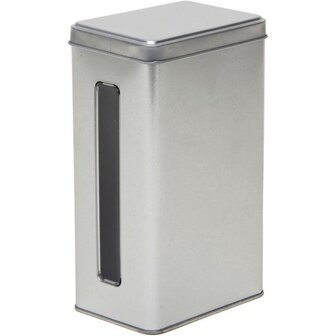 6x Zilveren rechthoekige opbergblikken/bewaarblikken 17 cm met venster. Aluminium blik/voorraadbus voor het bewaren van suiker, suikerklontjes, melkpoeder, meel, bloem, rijst, snoepgoed of andere dingen in de keuken. Materiaal: aluminium (metaal), kunststof. Formaat: 11 x 7,3 x 17,8 cm. Inhoud: 1,43 liter. Rechthoekige zilveren opbergblikken/bewaarblikken/voorraadblikken/voorraadbussen. U ontvangt 6 stuks.