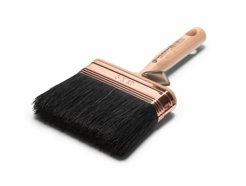 Ovale blokwitter van hoogwaardige kwaliteit gevuld met Chinees zwart varkenshaar, 70% tops en voorzien van verkoperde band. Geschikt voor het schilderen van plafonds en muren met latex- of acrylverven. De verf komt beter in de poriën dan met een verfrol.