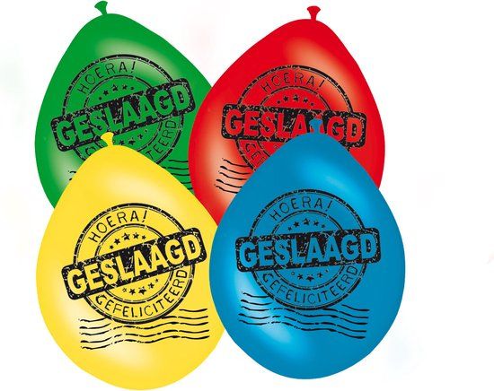Folat - Ballonnen 12in/30cm Geslaagd /8 - Ballonnen met opdruk geslaagd. Per 8 stuks verpakt. De ballonnen zijn door de manier van bedrukking niet geschikt op te vullen met helium. De tekst staat dan op z'n kop.Producten van het merk Folat zijn altijd net