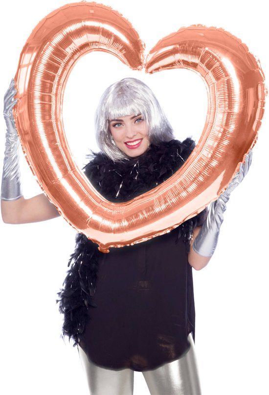 Folat foto frame in de kleur rose goud. Deze opblaasbare folie ballon is in de vorm van een hart. Opgeblazen is deze hartvorm photo prop ca. 80 x 70 cm groot. Combineer de fotolijst met andere foto props voor een geslaagd feest! De fotoprop is perfect