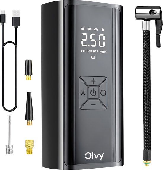 Olvy Compressor Bandenpomp - Draagbare Luchtcompressor - 7000 mAh - Elektrische Fietspomp - Fiets/Auto/Motor/Bal/Luchtbed - Balpompen