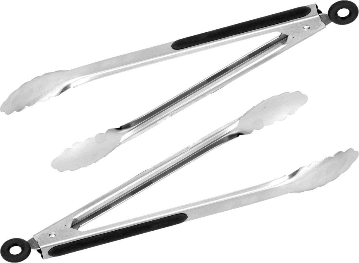 2x barbecue tangen / vleestangen met sluitsysteem RVS 34 cm - Barbecue benodigdheden - Barbecue
