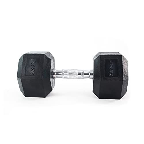 Deze hexagonale halters met vast gewicht zijn gemaakt van rubber VEELZIJDIG ONTWERP: De rubberen koppen maken een breed scala aan oefeningen en langdurig gebruik mogelijk GERIBBELDE HANDGREPEN: De handgrepen hebben een omtrek van 33 mm BREED SPECTRUM AAN GEWICHTEN: Kies uit ons assortiment gewichten (5-30 kg) om te vinden een optie die past bij uw kracht, fitheid en voorkeur voor oefeningen VERSTERK EN TONISEREN: Halters kunnen worden gebruikt voor allerlei thuisworkouts, of het nu individueel is, als paar of in combinatie met ander materiaal, zoals de verstelbare dumbbellbank of een oefenbal