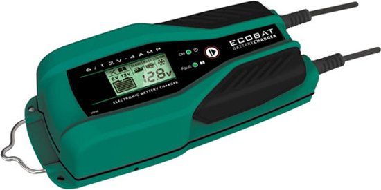 Deze lader van ECOBAT is een perfect apparaat voor het onderhouden en opladen van accu's in auto's, motoren, boten, enz.