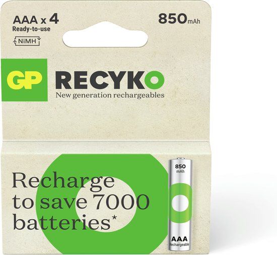 GP ReCyko Rechargeable AAA Batteries - 850mAh - 4 Pack - Batterijen voor mp3-spelers