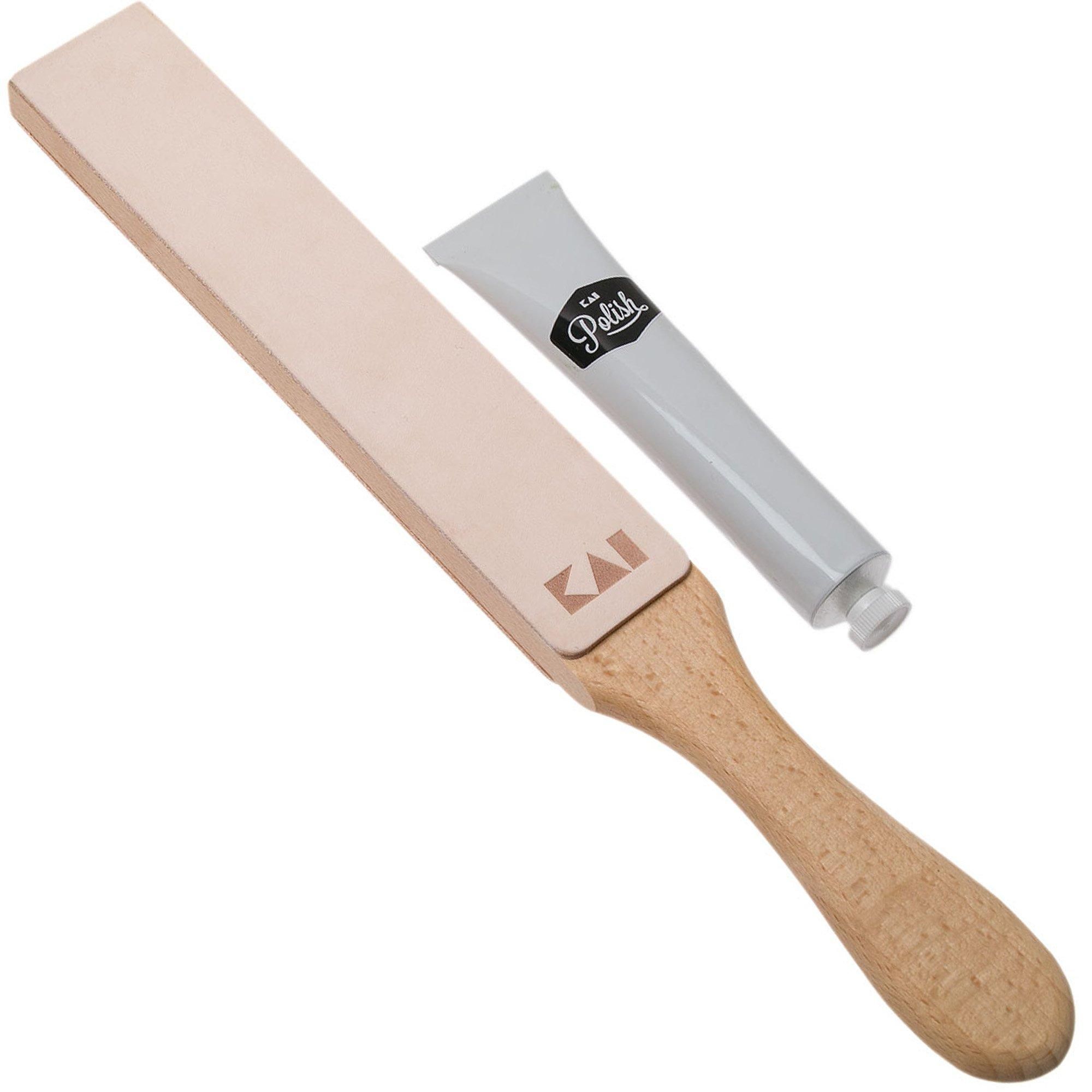 Kai Polishing Strop Set with Stropping Paddle and Polishing Paste - Aanzetstalen