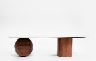 Sissy-Boy - Houten koffietafel met marmer blad en asymmetrisch onderstel