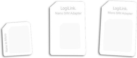 With the SIM card adapters LogiLink you always have the right SIM card size at hand. The adapters range from the nano-SIM to standard SIM.\n\n- Micro SIM to Standard SIM: 25 x 15 x 0.8 mm.\n- Nano SIM to Micro SIM: 15 x 12 x 0.8 mm.\n- Nano SIM to Standard SIM: 25 x 15 x 0.8 mm.\n- Incl. SIM card ejector pin.