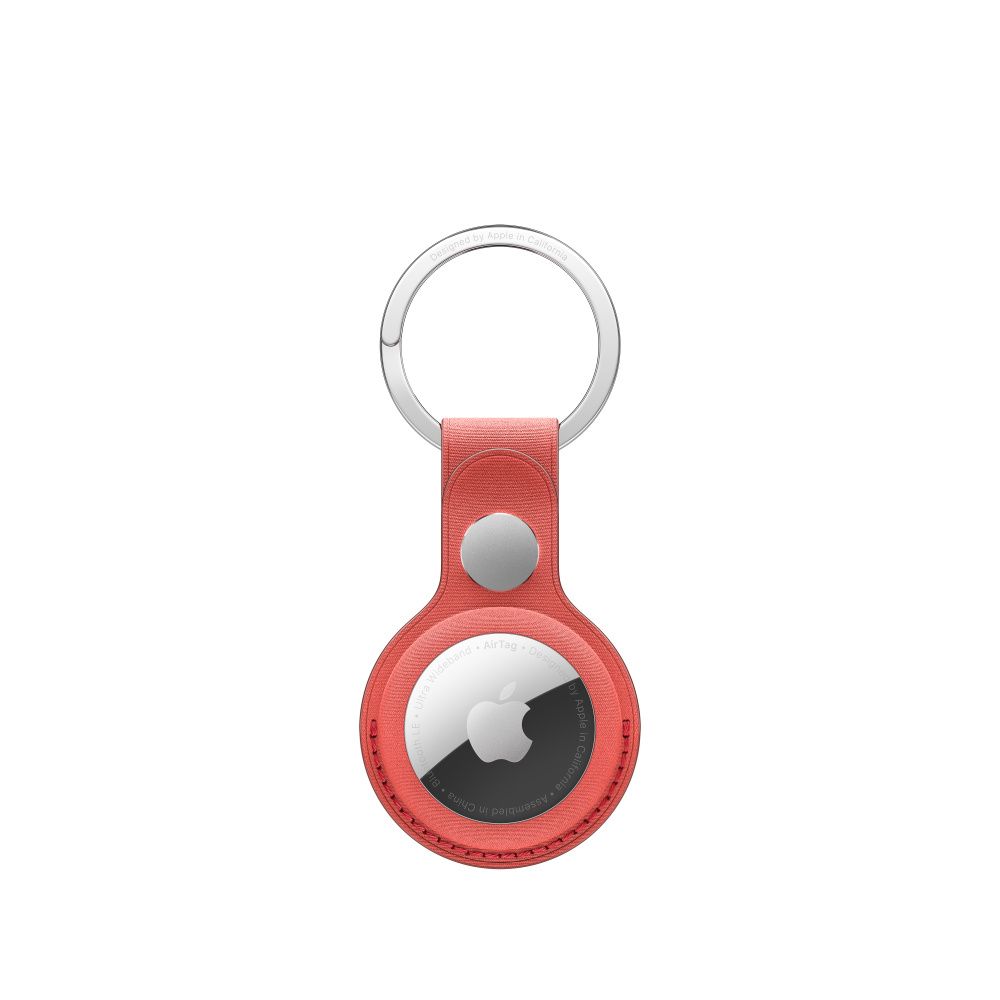 De FineWoven sleutelhanger is met veel zorg vervaardigd van innovatieve materialen. Het robuuste roestvrij staal springt meteen in het oog. Het stevige microtwill, dat aanvoelt als zacht suède, bestaat uit 68 procent gerecyclede inhoud en heeft een aanzienlijk lagere CO₂‑voetafdruk dan leer. De AirTag zit stevig op z’n plek, dus je hoeft niet bang te zijn dat hij eruit valt. AirTag is afzonderlijk verkrijgbaar.