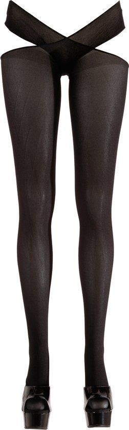 Cottelli Collection Open Kruis Kousen met Riem en Roze Strikjes - Zwart - S/M - Panty