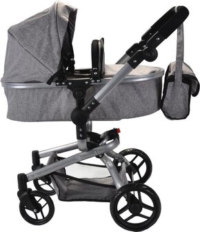 Bandits & Angels Poppenwagen Modern Angel 2in1 Grey - Grijs - Verstelbare Duwstang - Met Boodschappenmand - Accessoires voor poppen en actiefiguurtjes