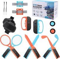 De kit bevat 2 tennisrackets, 2 golfclubs, 2 zwaardaccessoires, 2 bowlingbalgrepen, 2 gedeelde gripadapters, 2 polsbandjes, 2 beenbandjes, 2 duimgripkapjes en 2 extra polsbandjes. Elk accessoire is ontworpen voor een meer meeslepende en comfortabele game-ervaring.