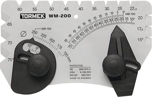 De Tormek WM-200 hoekmeter is een gepatenteerd slijpgereedschap dat op twee manieren kan worden gebruikt. Met een diameter van 250mm (10”) tot 150mm (6”), is de hoekmeter geschikt voor elke slijpsteen. Technische gegevens 9 verschillende hoeken, verstelbaar van 10° tot 75° Geschikt voor slijpstenen van 250mm (10”) diameter tot 150mm (6”) diameter 2 magneten om de hoekmeter gemakkelijk te bevestigen op de machinebehuizing Met behulp van de Tormek WM – 200 Graden Boog kunt u het slijphulpstuk op de slijpsteen plaatsen en de gewenste slijphoek instellen. Vervolgens kunt u de hoek van uw gereedschap meten en aanpassen aan de gewenste slijphoek. Dit zorgt voor een nauwkeurige en consistente slijpprestatie. De hoekmeter is geschikt voor elke slijpsteen van 250mm (10") diameter tot 150mm (6") diameter. De hoekmeter beschikt over twee magneten voor het plaatsen op de behuizing van de machine. Met de Tormek WM – 200 Graden Boog heeft u de perfecte tool om uw gereedschap sneller en nauwkeuriger te slijpen.