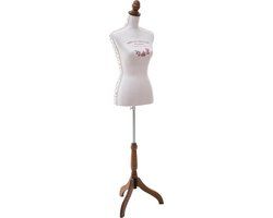 De paspop is een elegant en decoratief meubelstuk voor je slaapkamer of dressing. De mannequin kan ook als kleerhanger gebruikt worden of als handig hulpstuk in de hobbykamer. De etalagepop heeft een romantische print en heeft een stevige houten driepoot.