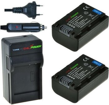 Bekijk productChiliPower NP-FV50 Accu's voor Sony - 2 stuks + Lader + Autolader - Accu's voor videocamera's