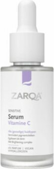 ZARQA Serum Vitamine C met tweevoudige werking helpt de vorming van pigmentvlekken voorkomen en vermindert tegelijkertijd zichtbare pigmentvlekken. ZARQA Serum Vitamine C met mineralencomplex heeft een tweevoudige werking. Het helpt de vorming van pigmentvlekken voorkomen en vermindert tegelijkertijd zichtbare pigmentvlekken aan het huidoppervlak. Vitamine C is een effectieve antioxidant die de huidtint verheldert en tekenen van veroudering vermindert. Door het zuiver plantaardige Brightening complex verminderen donkere vlekken en een ongelijkmatige teint. De lichtgewicht formule trekt snel in tot diep in de huidlagen.
