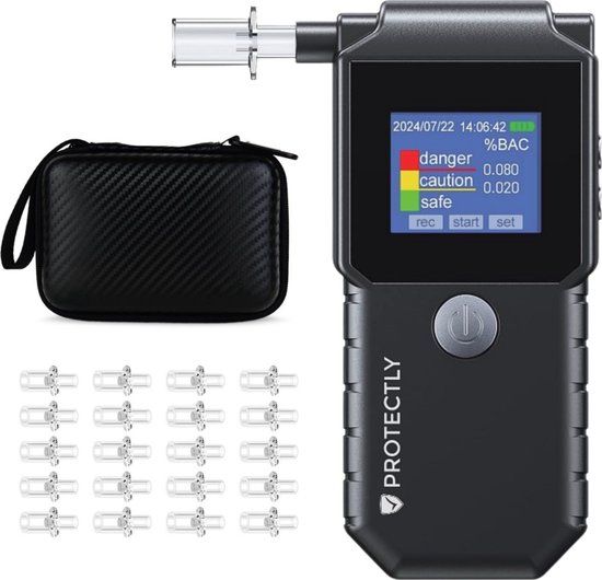 Protectly® Digitale Alcoholtester - Blaastest - USB-C Oplaadbaar - 20 Mondstukjes - 2025 Model - Ademanalyseapparaten