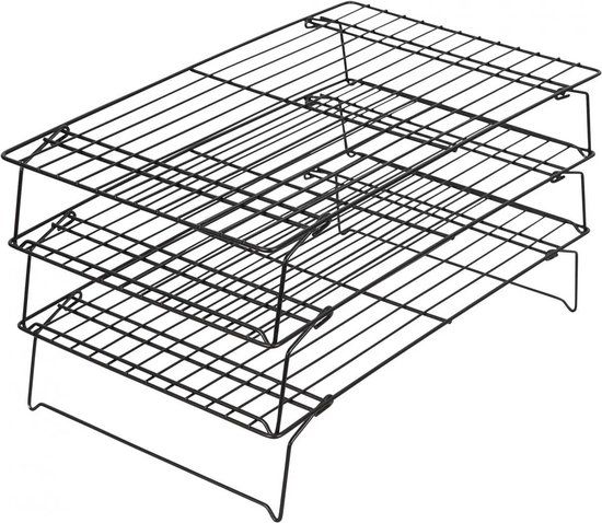 Wilton Recipe Right Koelrek met antiaanbaklaag, 3-delig Gemaakt van staal; versterkte anti-aanbaklaag voor gemakkelijk losmaken en snel schoonmaken Inclusief 3 stapelbare koelroosters van 40,1 x 25 x 4,57 cm. Beperkte garantie van 5 jaar; neem contact op met de verkoper voor meer informatie Vaatwasserbestendig; of met de hand afwassen in een warm sopje en goed afdrogen met een zachte doek