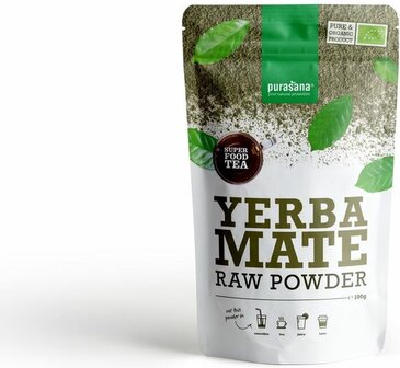 Yerba mat theepoeder van Purasana is afkomstig uitZuid-Amerika. De unieke, bitterzoete smaak komt het besttot zijn recht als je het warm serveert, maar kan evengoedook koud gedronken worden. In Zuid-Amerika is het ookwel gekend als drank van de goden aangezien het helptom het lichaam sterk te houden en je meer energiek telaten voelen. Daarnaast draagt het bij tot het beheersenvan het lichaamsgewicht en tot het afbreken van vetten.Tot slot beschermt yerba mat het hart & bloedvaten. Yerbamat bevat vitamine B1, B2, C, kalium en magnesium.Ingredinten: 100% puur en biologisch Yerba mat-poeder(Ilex paraguariensis), afkomstig uit Zuid-Amerika. Bevatcafene.