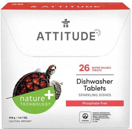 We willen allemaal het beste voor onze familie. Daarom bieden we Attitude Vaatwas tabletten aan in een 26 stuks verpakking en in een soort Eco-zakje waar je ze in kan laten zitten als je ze met droge handen in de vaatwasser stopt , het zakje lost vanzelf