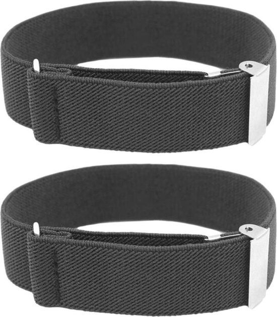 Een paar donkergrijze elastische mouwophouders. Ideaal wanneer uw mouwen iets te lang zijn en u niet met opgerolde mouwen wilt rondlopen. U doet deze bandjes om uw arm en kleding en zet ze vast op de gewenste maat. Hierna trekt u de kleding iets omhoog, waardoor de mouw korter wordt. De mouwophouders zijn 25mm breed en in lengte te verstellen van ongeveer 15-30cm. Ze passen dus bijna altijd. Voor deze prijs ontvangt u twee mouwophouders.