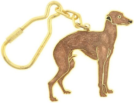 Behave® Sleutelhanger hond hazewind bruin emaille 12,5 cm - Sleutelhangers