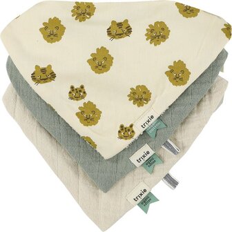 Met deze leuke bandana slabbetjes blijven de kleertjes van je baby'tje schoon. De set bestaat uit 1 leuke print en twee effen kleuren. De zachte tetrastof zit aangenaam aan.