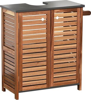 De Daan badkamerkast van Lamento zorgt voor een warme toets in jouw badkamer. De badkamerkast is gemaakt van acacia en MDF, en is uitgerust met 2 deuren. Afmetingen 66 x 30 x 70 cm