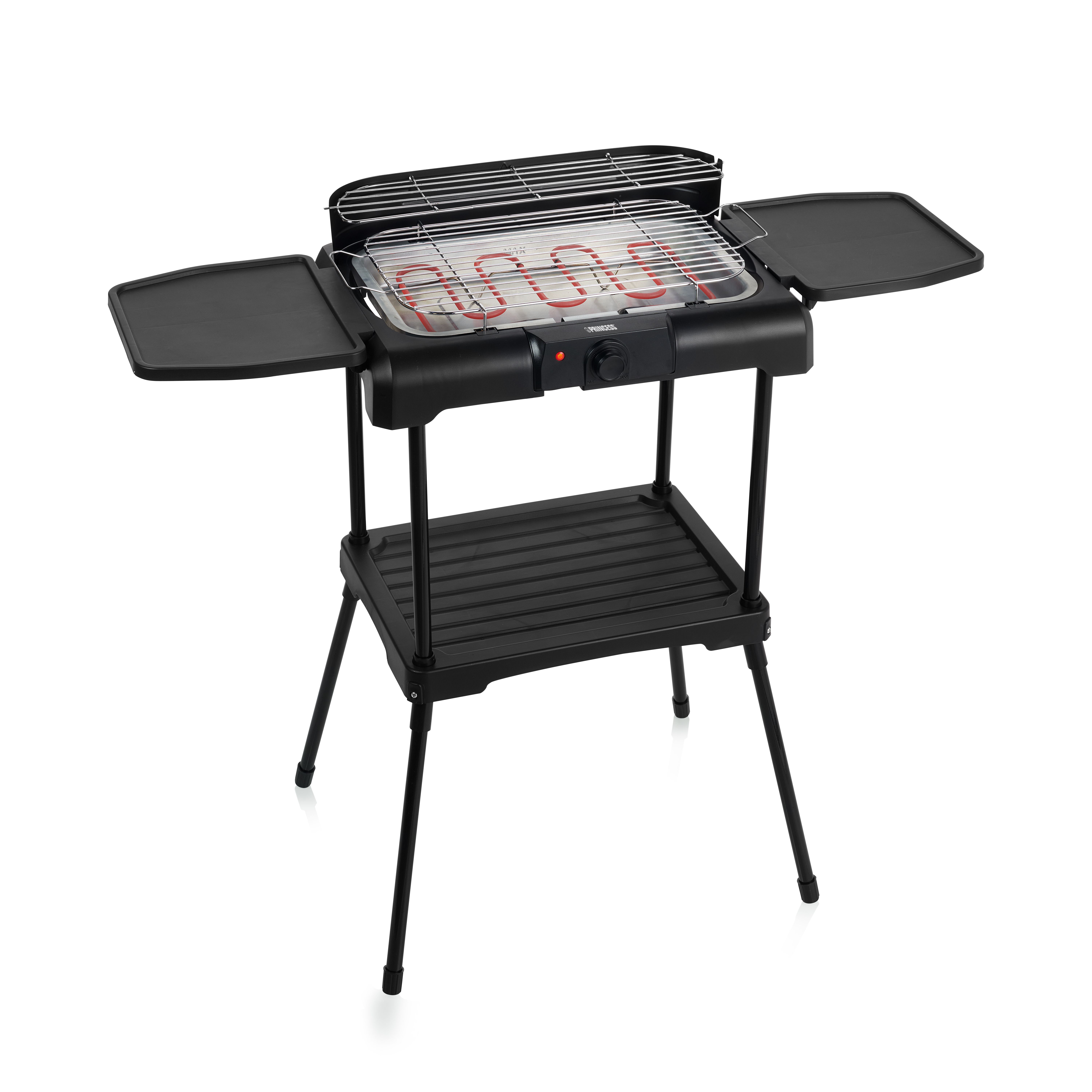Dankzij de meegeleverde standaard gebruik je de Princess elektrische barbecue zowel als tafelmodel als losse barbecue. De stevige standaard heeft een extra opbergblad waar je al je grillgerei, bestek en marinades in kwijt kunt. De barbecue heeft twee grillroosters op verschillende hoogtes waardoor je niet alleen vlees grilt, maar ook vis en groenten. Gebruik het bovenste grillrooster om een groter stuk vlees te laten rusten, zodat het warm en sappig blijft, terwijl u de groenten snel grilt op het onderste rek, zodat u het allemaal tegelijkertijd kunt serveren.