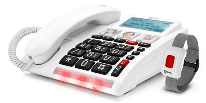 Bekijk productGeemarc CL9000 4G huistelefoon via simkaart + SOS armband - Wit - Bedrade telefoons